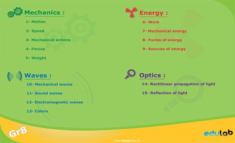 | Chapter 1: Mechanical Actions | Chapter 6: Forms of energy | Chapter 11: Colors |